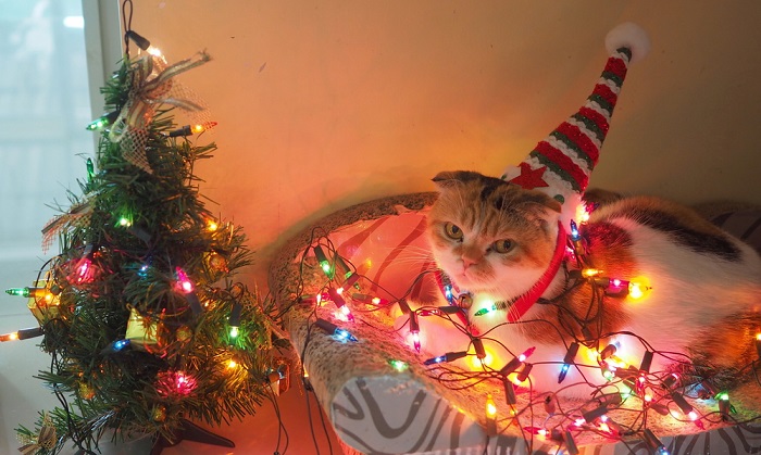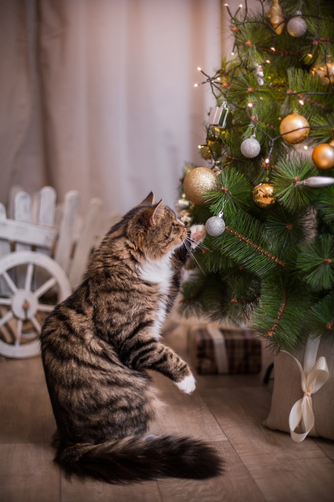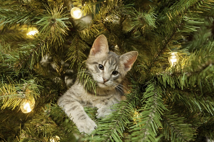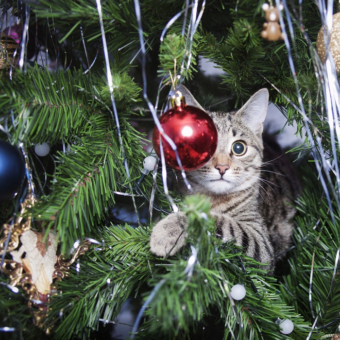 Bradul de Crăciun nu este doar pe placul nostru, al oamenilor mari și mici, dar și pe placul felinelor. Este prea bine știut că năzdrăvanele pisicuțe au o relație “specială” cu pomul de Crăciun, că adoră să stea sub el, dar și în el, că uneori au cele mai năstrușnice idei despre cum ar putea să folosească globulețele pe post de mingii și beteala ca loc de marcat prin casă, să-și pună instalația de brad pe post de mărgele decorative sau să se rostogolească prin casă cu tot cu brad.