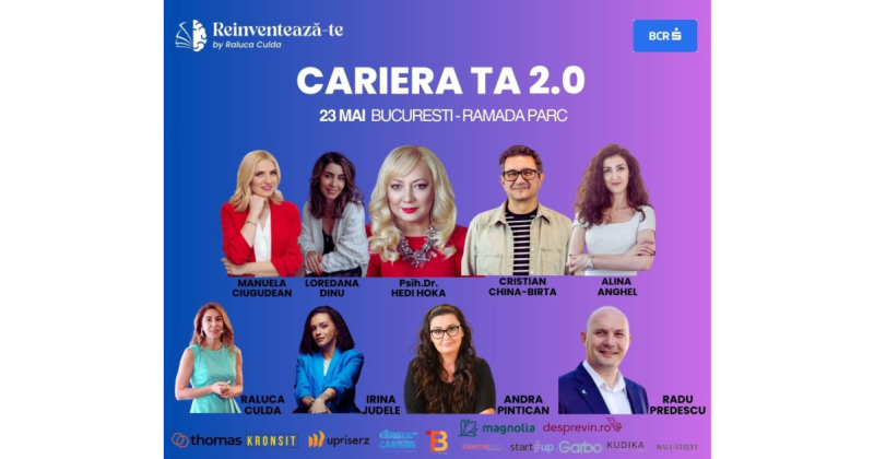 Bilete și detalii despre conferință se găsesc pe:https://www.reinventeazate.ro/conferinta-cariera-ta-2-0/