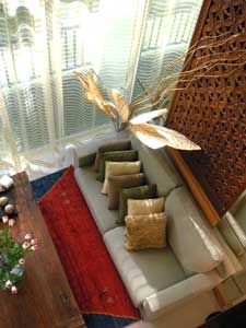 * Mobilierul este de cele mai multe ori asezat pe diagonala, evitand unghiurile drepte. Nu este nevoie de mobilier sau accesorii in perechi, deoarece accentul cade pe lejeritate si se evita simetria fortata.