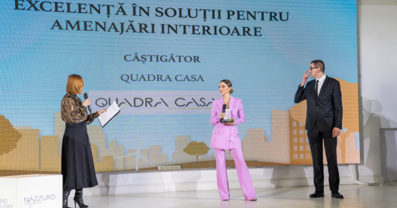 Quadra Casa a fost desemnată compania care a adus valoare adăugată în proiecte prin soluțiile de calitate în zona de design și materiale oferite utilizatorilor finali (rezidenți/dezvoltatori). Criteriile de selecție pentru acordarea premiului au fost Brandul, Calitatea, Showroom-uri.