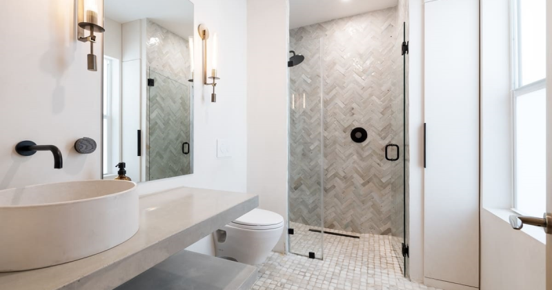 O cabină de duș cu pereți din sticlă transparentă este o alegere excelentă, deoarece elimină barierele vizuale și creează continuitate în design. În plus, oglinzile mari, poziționate strategic, pot transforma o baie mică într-un spațiu care pare mult mai generos.