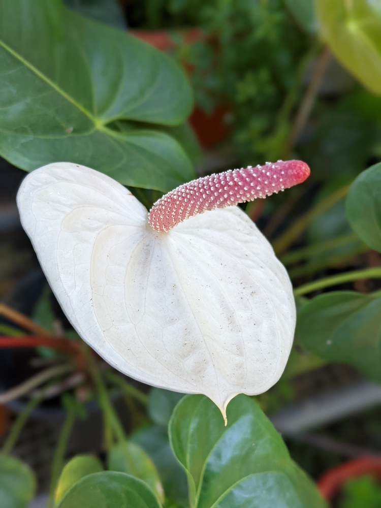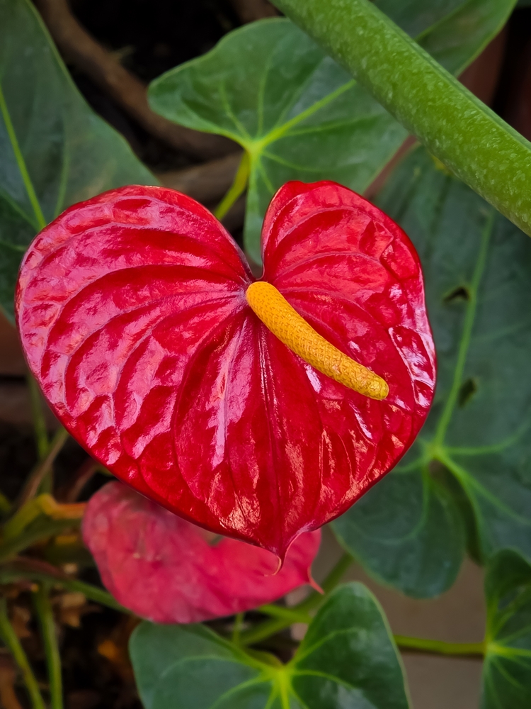 Printre trăsăturile distinctive ale acestei plante se numără frunzele mari, lucioase, de un verde intens, care oferă un fundal ideal pentru florile sale impresionante. Inflorescențele anthuriumului sunt alcătuite dintr-o spathe colorată (partea care pare a fi petală) și un spadix central, care conține florile propriu-zise. Această structură unică dă plantei aspectul său inconfundabil și explică de ce este atât de populară printre pasionații de plante exotice.