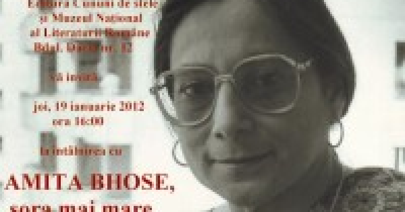 Joi, 19 ianuarie 2012, ora 16:00, Muzeul National al Literaturii Romane din Bdul Dacia nr. 12 va gazdui evenimentul intitulat „Amita Bhose, sora mai mare a lui Eminescu”, organizat de editura Cununi de stele.
