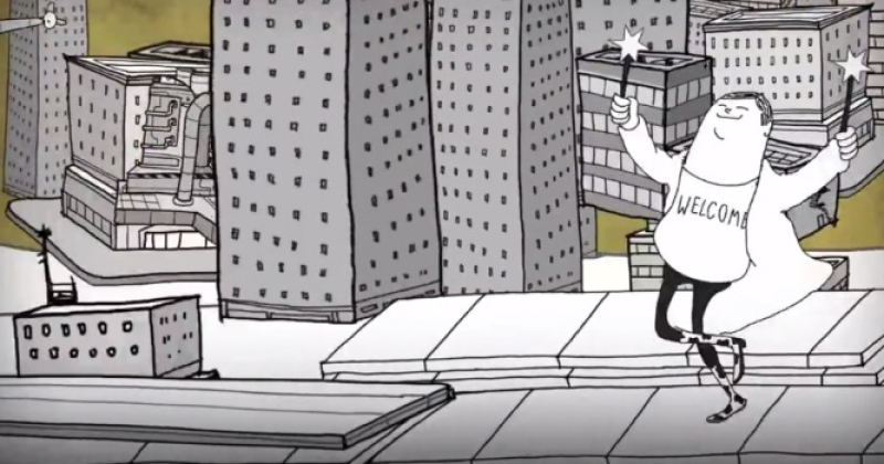 "OMUL" a fost realizat de catre Steve Cutts, un artist freelance din Londra, specializat in animatie si ilustratie.