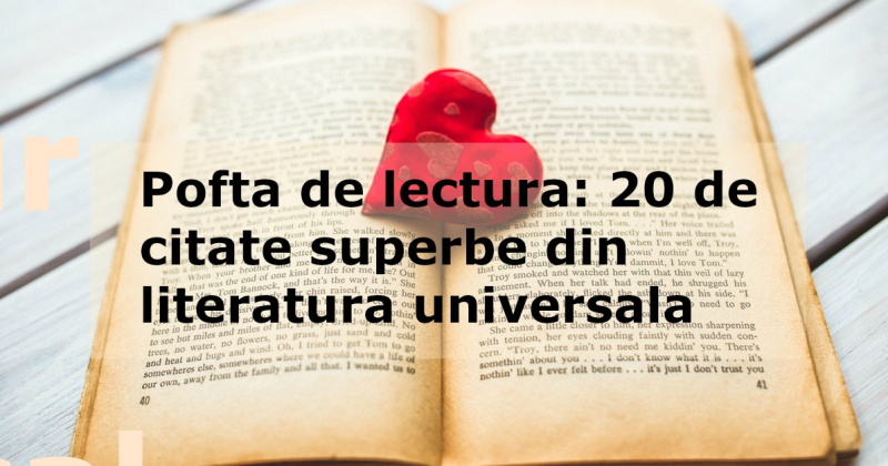 Acesta este un articol care dezvaluie cat de sublima este literatura, cat de mult bine au facut scriitorii intregii lumi, pentru ca in frazele lor au lasat sa transpara sensibilitate si clipe de neuitat. Acesta este un articol care iti va reda pofta de lectura! Adauga si tu citatul tau favorit, intr-un comentariu la acest articol.
