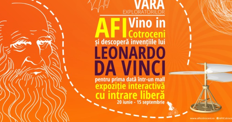 Până în data de 15 septembrie, clienții AFI Cotroceni vor avea ocazia să viziteze în mod gratuit una dintre cele mai apreciate și impresionante expoziții internaționale. Exponatele, ce reprezintă unele dintre cele mai spectaculoase invenții ale geniului Leonardo da Vinci, vor fi dispuse în premieră într-un mall din România. Expoziția va fi inaugurată pe data de 20 iunie, de la ora 20:00, în zona cinematografului.