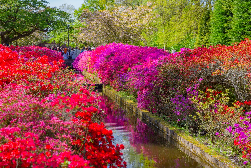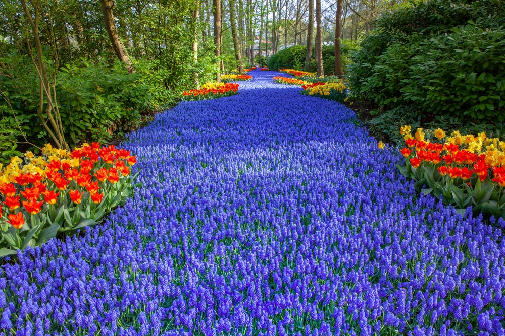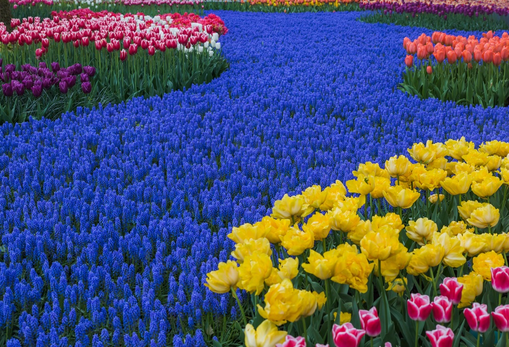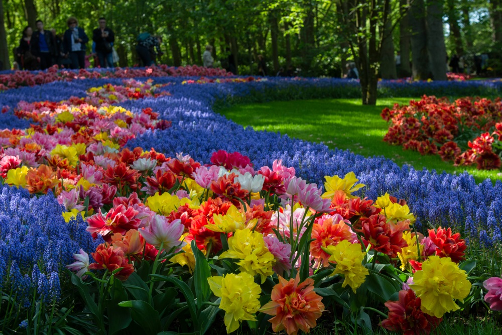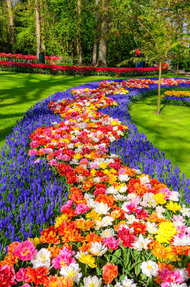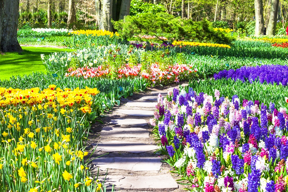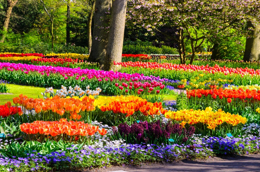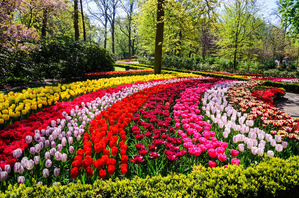 Imaginați-vă adunate la un loc, printre straturi de iarbă verde și crudă si iazuri cu apă și fântâni arteziene, cele mai parfumate și diverse soiuri de zambile, frezii gingașe, narcise inimoase, iriși albaștri, crini înmiresmați, trandafiri nobili, brândușe de primăvară și multe, multe și încântătoare lalele – reginele încoronate și faimoase ale parcului, atracția turistică principală. Parcul Keukenhof a fost inclus în topul celor mai mari grădini cu flori din lume și, conform wikipedia, peste 7 milioane de bulbi de flori sunt plantați anual în grădinile impresionante ale parcului, iar 40 de grădinari iscusiți se îngrijesc de neprețuitele lor comori.
