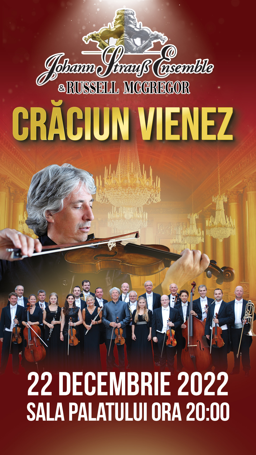 Concertul „CRĂCIUN VIENEZ” cel mai reprezentativ eveniment muzical al sărbătorilor de iarnă, susținut de faimoasa orchestră Johann Strauss Ensemble, va avea loc și anul acesta pe data de 22 decembrie, la Sala Palatului din București, de la ora 20:00.