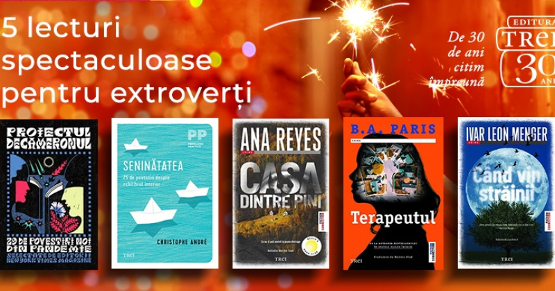 Lecturile cele mai potrivite pentru acest tip de persoane trebuie să se armonizeze cu felul lor de a fi – thrillere cu răstunări surprinzătoare de situație, romane captivante, cu stil inedit, dar și cărți de dezvoltare personală, care să le permită să se angajeze într-un dialog virtual interesant cu autorii. Să descoperim 5 lecturi spectaculoase pentru extroverți recomandate de Grupul Editorial Trei.