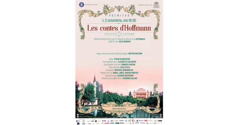 În distribuția celor două reprezentații vor interpreta: Valentin Vasiliu, Iustinian Zetea (Lindorf/Coppélius/Miracle), Vicențiu Țăranu, Cătălin Toropoc (Dapertutto), Lucian Corchiș, Daniel Magdal (Hoffmann), Mădălina Barbu – invitată, Oana Șerban – invitată (Olympia), Oana Andra, Crina Zancu (Giulietta), Simonida Luțescu, Simona Neagu, Mihaela Stanciu (Antonia), Mihaela Ișpan, Sidonia Nica, Matei Tudose – invitat (Niklausse), Liviu Indricău, Dumitru Filip – invitat (Spalanzani), Ciprian Pahonea, Cristian Rusenescu, Daniel Trandafir (Nathanael), Filip Panait, Horia Sandu (Crespel), Sorana Negrea, Claudia Caia – invitată, Alina Dragnea – invitată (O voce), Florin Simionca, Daniel Pop – invitat (Luther), Andrei Lazăr, Valentin Racoveanu (Andrés, Cochenille, Franz, Pitichinaccio), Dan Indricău, Florin Simionca (Hermann), Daniel Filipescu, Dan Indricău (Schlemil), cu participarea Orchestrei și a Corului Operei Naționale București.