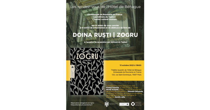 Romanul Z O G R U de Doina Ruști a apărut la Les éditions du Typhon, Marseille, cu sprijinul Fundației Jan Michalski. Traducerea este semnată de Florica Courriol.