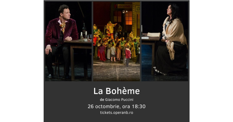 Miercuri, 26 octombrie, ora 18:30, vă așteptăm la spectacolul cu opera „La Bohème” de Giacomo Puccini, conducerea muzicală Vlad Conta. Spectacolul „La Bohème” de Giacomo Puccini este o producție tradițională de operă, cu accent pe adevărul istoric și pe interpretarea personajelor, așa cum le-au dorit autorii. Personajele retrăiesc astfel pe scena Operei Naționale București realitatea crudă dată de statutul tinerilor artiști în epoca lui Puccini în Parisul anilor 1880, dar din care ei reușesc să evadeze uneori prin creație, iubire și vis.
