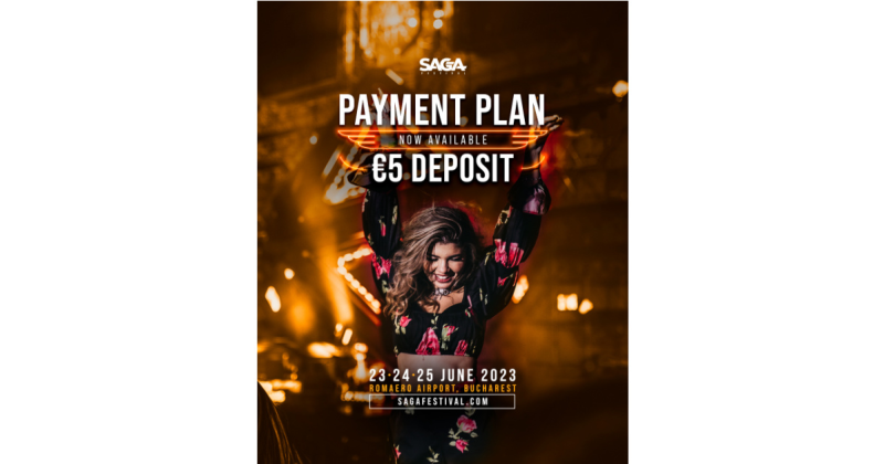 La cererea publicului, SAGA, primul festival al verii din România, reintroduce Payment Plan, un produs prin care abonamentul pentru cele 3 zile de distracție poate fi achiziționat la un preț special, cu doar 5 euro depozit și 4 rate egale. Astfel, prețul final al biletului este de 80 de euro, cea mai avantajoasă ofertă a unui festival care în doar câteva zile de când a fost lansată, a fost deja accesată de aproximativ 3000 de festivalieri.