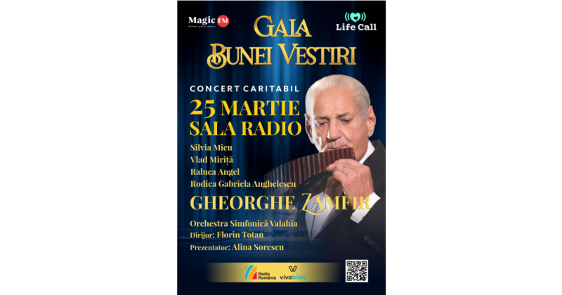 Pe scena Sălii Radio, cu începere de la ora 19.30, se vor reuni artiști români, cunoscuți la nivel internațional. Printre aceștia se numără: “Regele naiului”, Maestrul Gheorghe Zamfir, sopranele Rodica Gabriela Anghelescu și Silvia Micu, cunoscutul tenor Vlad Miriță și Raluca Angel, fosta solistă a trupei Angels.