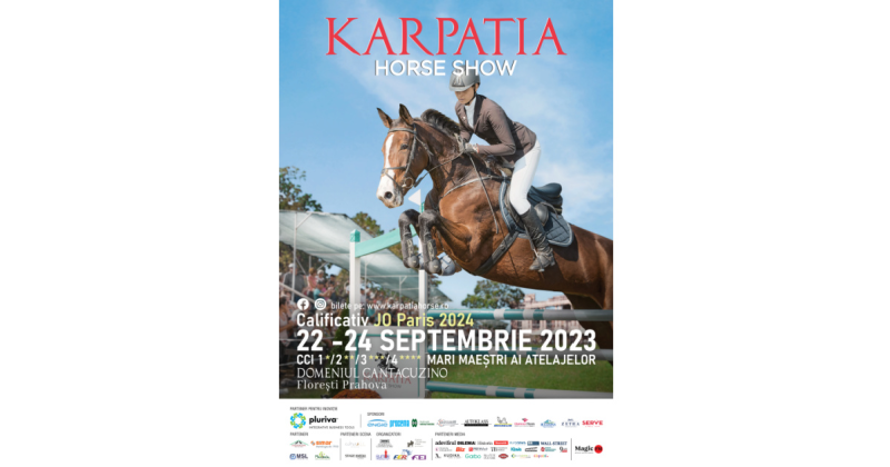 Cea de-a opta ediție a Karpatia Horse Show, ce va avea loc între 22-24 septembrie, pe Domeniul Cantacuzino din Florești, Prahova va reuni într-o locație istorică și elegantă sportivi din România și de peste hotare pentru un eveniment unic în sud-estul Europei. Concursul Complet Internațional CCI 4* va aduce puncte pentru Jocurile Olimpice de la Paris concurenților ce vor participa la spectaculoasele probe de călărie.
