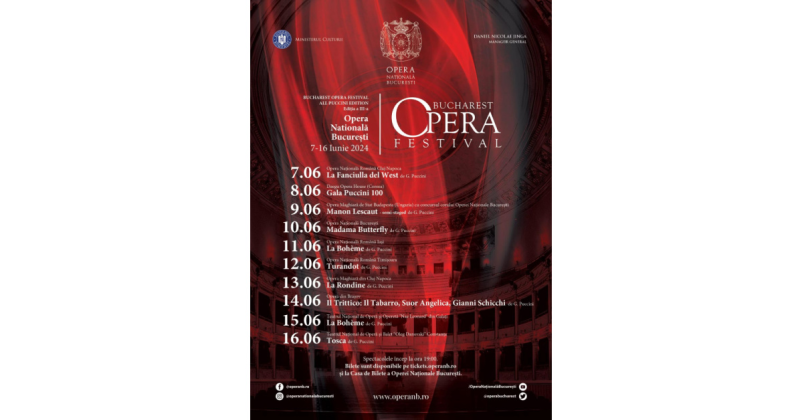 Bucharest Opera Festival – All Puccini Edition are pe afiş în cele 10 seri de festival, nu mai puţin de 8 producţii din creația marelui compozitor, un spectacol semi-staged, o gală de operă și 10 teatre: Opera Maghiară de Stat din Budapesta, Daegu Opera Festival din Coreea, Opera Națională Română Iaşi, Opera Naţională Română din Cluj Napoca, Opera Națională Română Timişoara, Opera Maghiară din Cluj-Napoca, Teatrul Național de Operă și Balet „Oleg Danovski” din Constanţa, Opera din Braşov, Teatrul de Operă şi Operetă „Nae Leonard” din Galaţi şi, bineînţeles, Opera Naţională din Bucureşti.