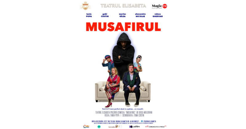 Comedia “Musafirul” este noua producție a Teatrului Elisabeta, care îi aduce împreună pe Tania Popa, Gabi Costin, Marius Gîlea, Raluca Ghervan și Alexandru Nicolae. Textul contemporan, montat în premieră națională, aduce în discuție provocările prin care orice cuplu trece mai devreme sau mai târziu: plictiseala, rutina, viciile, lipsa de răbdare și înțelegere față de celălalt.