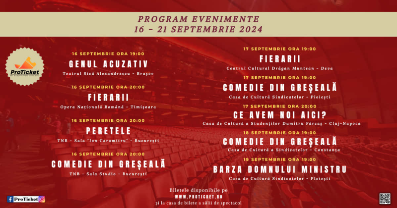 Biletele pentru toate spectacolele sunt disponibile pe https://proticket.ro/