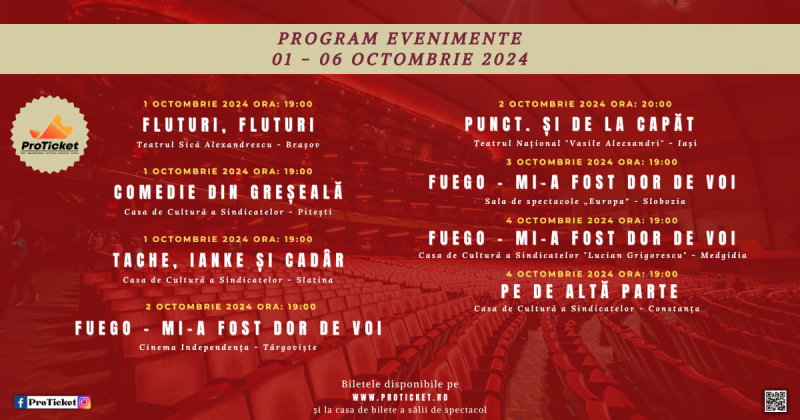 Bilete disponibile la toate spectacolele pe https://proticket.ro/.