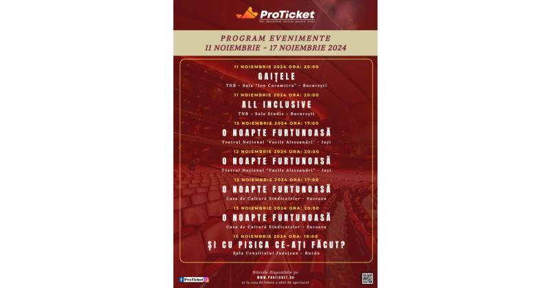 Biletele pentru toate spectacolele sunt disponibile pe https://proticket.ro.