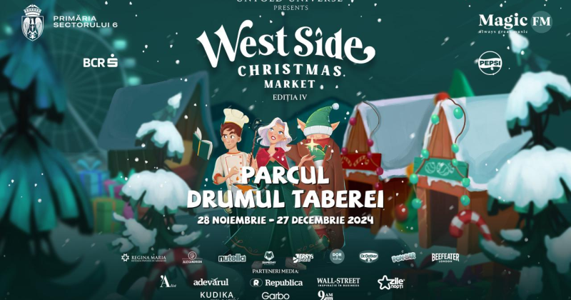 Pentru al patrulea an la rând, Parcul din Drumul Taberei se transformă în tărâmul de poveste ,,West Side Christmas Market”. Târgul se va deschide oficial pe data de 28 noiembrie, fiind de altfel și primul târg de Crăciun deschis în București. Trei dintre cele patru ediții de ,,West Side Christmas Market” au purtat semnătura UNTOLD. Organizatorii au pregătit o mulțime de surprize pentru cei care vor să trăiască emoția Crăciunului în cadrul ,,West Side Christmas Market”. Zeci de mii de beculețe, ornamente colorate, căsuțe de poveste, un brad unicat, perfect de postat pe Instagram, personaje de basm, arome îmbietoare de scorțișoară și vin fiert - toate se vor regăsi în târgul de Crăciun din sectorul 6. Printre principalele atracții se numără roata panoramică, un patinoar generos, carusel și trenuleț pentru copii și, nu în ultimul rând, Căsuța lui Moș Crăciun. Pe scena ,,West Side Christmas Market” vor urca artiști îndrăgiți precum Direcția 5, Fuego, Alina Sorescu, Gașca Zurli și alți invitați surpriză.