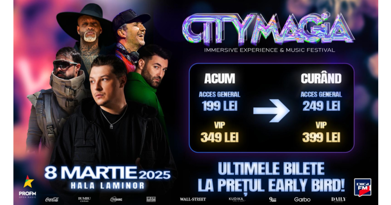 CityMagia aduce pe scenă artiști renumiți și un spectacol de excepție, promițând o seară memorabilă. Cei care vor să fie parte din acest show trebuie să se grăbească să își cumpere biletele la preț early bird înainte de majorare.