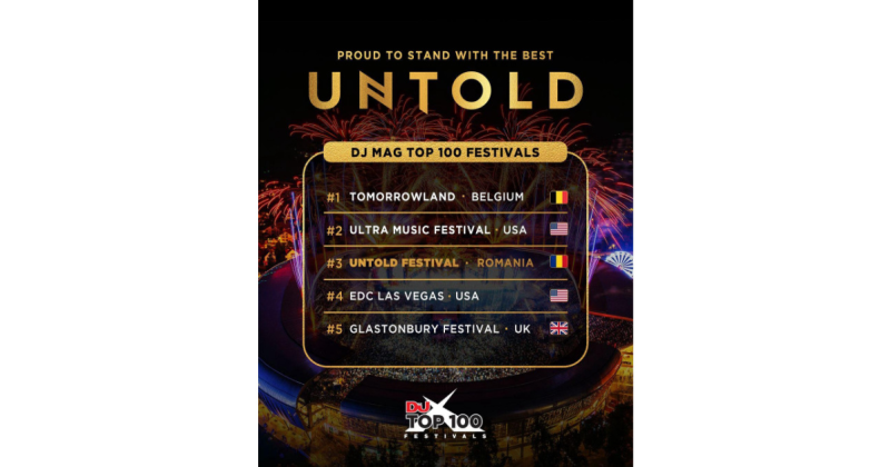 Top 100 Festivals realizat de DJ Mag este bazat exclusiv pe voturile publicului, iar rezultatul reflectă forța emoțională, calitatea experienței și impactul cultural al fiecărui festival. UNTOLD continuă să demonstreze că este un nume global, iubit de sute de mii de fani și respectat în industrie.