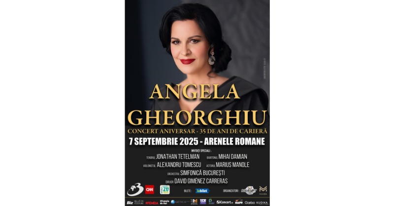 Concertul sopranei Angela Gheorghiu – una dintre cele mai mari voci ale operei mondiale, marchează celebrarea celor 35 de ani de activitate artistică și, totodată, aniversarea zilei naștere, într-un concert-eveniment alături de invitați speciali, pe 7 septembrie, la Arenele Romane.