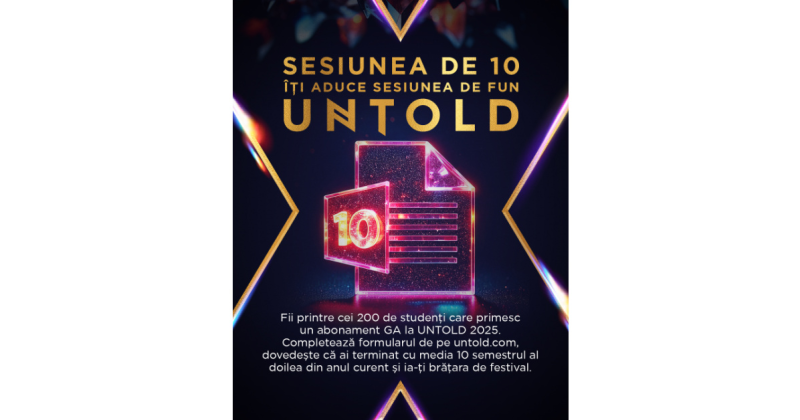 “Cea de-a patra ediție “Student de 10” este alături și anul acesta de tinerii care vor obține rezultate de excepție la sesiunea din vară. Aceștia vor avea acces gratuit la patru zile și patru nopți magice în universul UNTOLD, unde se vor bucura de muzica artiștilor lor preferați în cadrul festivalului aflat în top 3 în lume. E o onoare să îi avem ca invitați pe tinerii care prin eforturile lor academice și rezultatele deosebite construiesc un viitor plin de speranță pentru România. ”