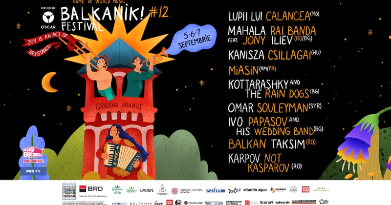 Balkanik Festival – Home of World Music #12 este organizat de Asociația Culturală Metropolis, fueled by OSCAR Downstream; proiect co-finanțat de Administraţia Fondului Cultural Naţional;*; sponsorizat de BRD Groupe Société Générale, cu sprijinul Uniunii Armenilor din România, al Centrului Cultural Armean din București, al Queen’s Nata de Coco & Queen’s Aloe Vera, European Food Safety Authority, Pop Cola, Vitamin Aqua. Partener tehnic: Epson România. Parteneri de ospitalitate: Hotel Caro, Hotel Minerva. Partener de cercetare: Cult Market Research.