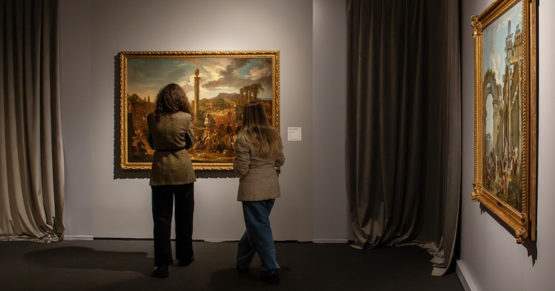 Printre acestea se numără capodopera „Pictorul și modelul său în aer liber” (1963), semnată de Pablo Picasso, precum și „Capriccio cu biserică gotică și lagună” (cca. 1720–1721), de Il Canaletto. Alte nume mari ale expoziției: Giovanni Paolo Panini, Pieter van Bredael, Jan Frans van Bloemen, Giovanni Ghisolfi, Carlo Labruzzi, Vincenzo Martinelli sau Lord Mancini (Francesco Mancini).