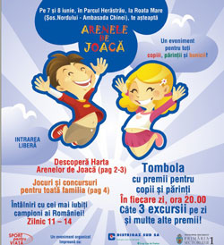 Arenele de Joaca, cel mai mare stadion de joaca pentru copii, se redeschide, pentru al treilea an consecutiv, pe 7 si 8 iunie, in Herastrau, la Roata Mare, zona Soseaua Nordului – Ambasada Chinei. Evenimentul este parte a campaniei sociale „Sport pentru Viata”, initiata de campioana Gabriela Szabo in 2006.