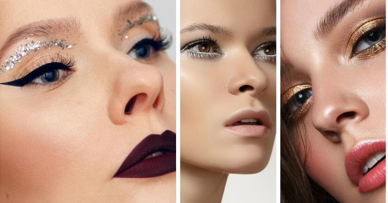 Astfel, trebuie să menționăm că în noaptea dintre ani, de Revelionul 2020-2021, se poartă pe pleoape străluciri nude sau colorate realizate cu ajutorul fardurilor strălucitoare sau al glitterulului incolor sau multicolor, cu particule minuscule sau voluminoase, mult alb sub forma liniilor de tuș grafice sau tip cat eye, nuanțe metalice de argintiu și auriu, linii de tuș duble, farduri de pleoape cremoase, cu particule strălucitoare sau cu efect “umed”, sprâncene dese, cu o alură pieptănată, albastru electrizant ca nuanță statement al Revelionului 2020-2021.