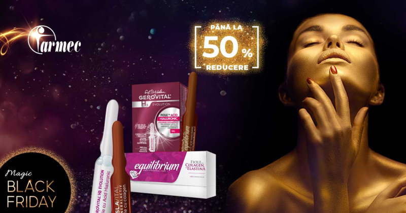 Între 12 și 18 noiembrie, produsele din portofoliul Farmec vor fi disponibile cu reduceri de până la 50% atât online, cât și în cele 30 de magazine de brand din toată țara și în cele două magazine de franciză. În catalogul campaniei Magic Black Friday se vor regăsi produse pentru ten, corp, păr și produse de make-up din toate gamele – de la produsele de tip fiolă, bestsellerul fiecărei ediții de Black Friday derulate de Farmec, până la produsele din gamele profesionale, de lux sau dermatocosmetice.