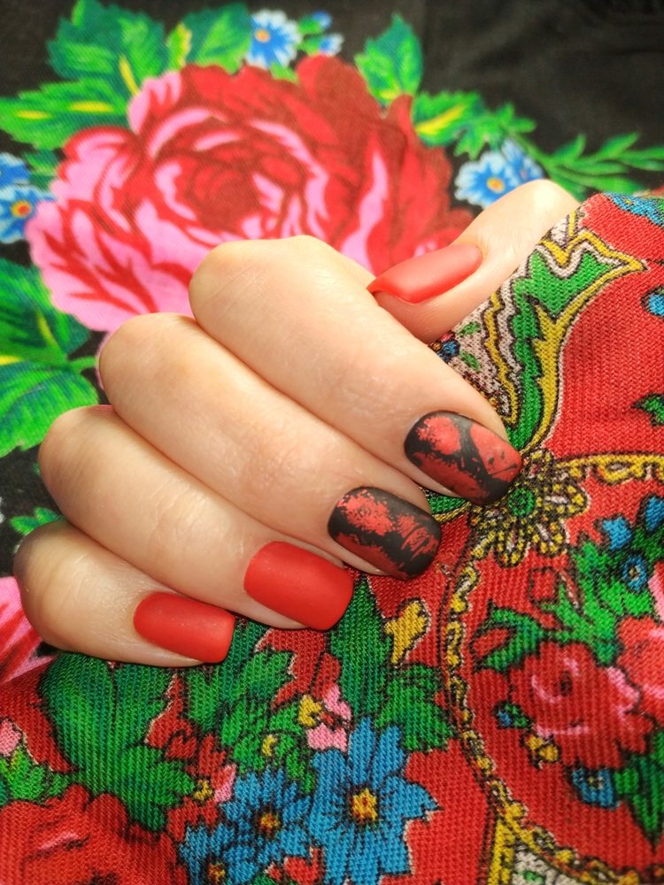 "Urme pe pensulă" pe unghiuțe nude și roșii