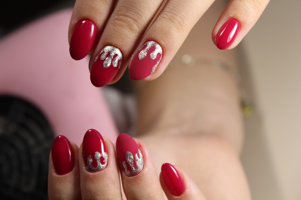 Manichiura splash, în care petele de roșu par pur și simplu aruncate neglijent pe unghii ca pe o pânză de tablou, a făcut furori anul acesta. Este un must-try în acest sezon și chiar de Sărbători!
