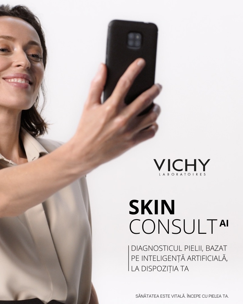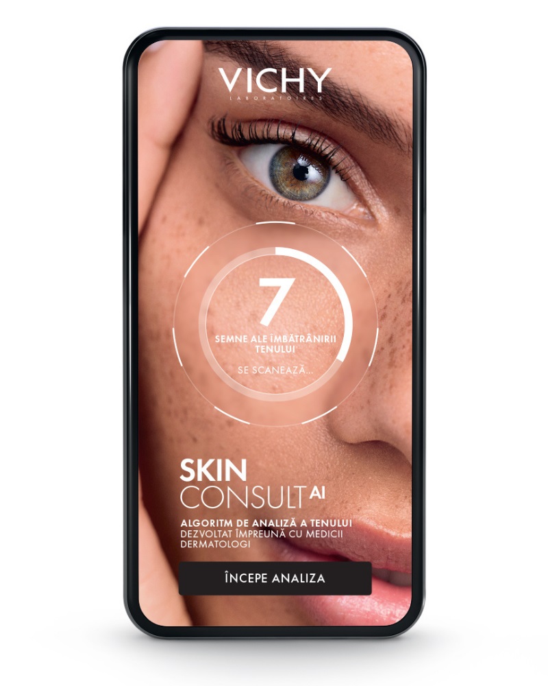 Vichy vine în ajutorul nostru prin algoritul dezvoltat împreună cu medici dermatologi, SkinConsultAI. Cu un simplu selfie și câteva întrebări despre tenul nostru, putem obține un protocol personalizat, în funcție de tipul de ten și de factorii de agresiune interni și exteni la care ne expunem zilnic.
