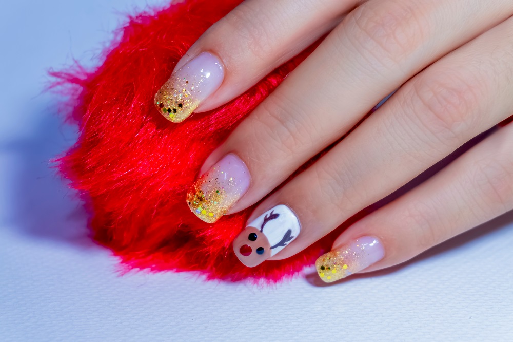Acum pe final de an, glitterul nu a ieșit deloc din uz atunci când vine vorba de manichiură, ba din contra. Este folosit cu încredere de experții în nail art indiferent că ne referim la glitter multicolor, auriu sau argintiu (de multe ori în combinație cu roșu sau verde, culorile de bază ale Crăciunului) fiindcă oferă un aer festiv manichiurii și se potrivește perfect atmosferei de Crăciun, luminițelor strălucitoare și globurilor decorative din pomul de Crăciun. Așadar, vom regăsi accentele de strălucire din belșug pe unghii sau, din contra, cu parcimonie, în stil minimalist.