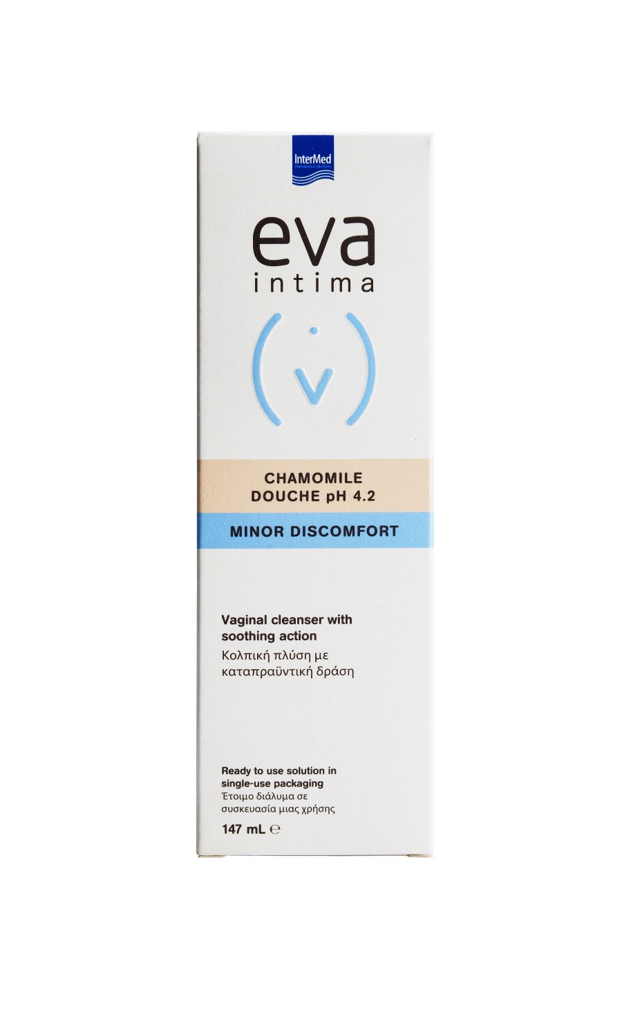 Dușurile Eva CHAMOMILE DOUCHE pH 4.2 sunt concepute să ofere o curățare delicată și eficientă, calmând imediat mucoasa vaginală, în caz de mâncărime, arsură și iritaţie care pot însoţi o infecţie vaginală. Poți alege varianta cu mușețel și acid lactic sau cu aloe vera și acid lactic.