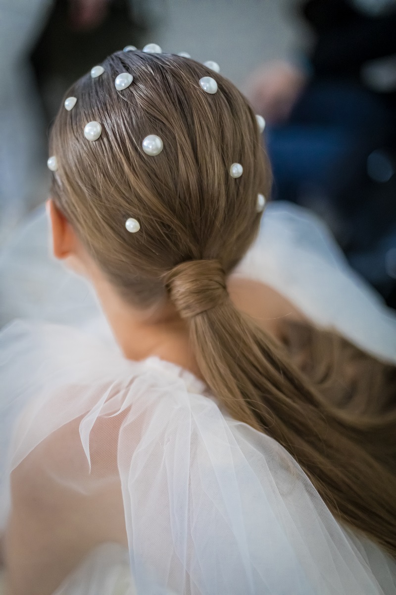 Uneori, detalii delicate precum perle minuscule sunt introduse printre împletituri măiestre sau chiar printre șuvițe, iar alteori sunt aplicate cu îndrăzneală, ca element decorativ opulent pe accesorii de păr precum clame, agrafe de păr sau bentițe demne de o regină a iernii și a gheții.