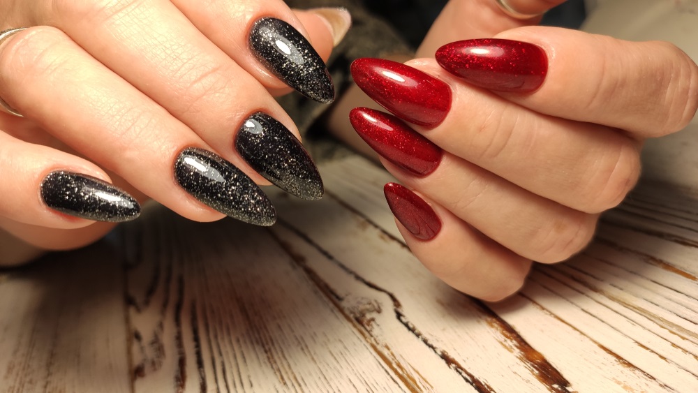 Modelele de manichiură cu glitter sunt din ce în ce mai diverse în acest sezon și regăsim glitterul metalic auriu, argintiu sau multicolor aplicat integral, maximalist pe unghii (într-un mod opulent, luxuriant, epatant sau, din contra, subtil), dar și minimalist, mai mult sub formă de accente sau detalii, abia atingând parcă vârfurile unghiilor, într-un french sau micro french perfect (poate fi și french dublu pentru un efect wow precum sunt vârfurile unghiilor pictate în 2 straturi foarte fine și subțiri: unul negru și unul argintiu strălucitor) .