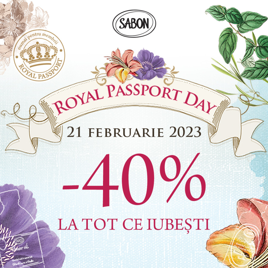 Și încă o veste bună, exclusiv pentru fanii Sabon: Pe 21 februarie 2023 e Royal Passport Day! Achiziționează din timp cardul tău de membru fidel și pregătește de cumpărături fericite cu 40% discount!