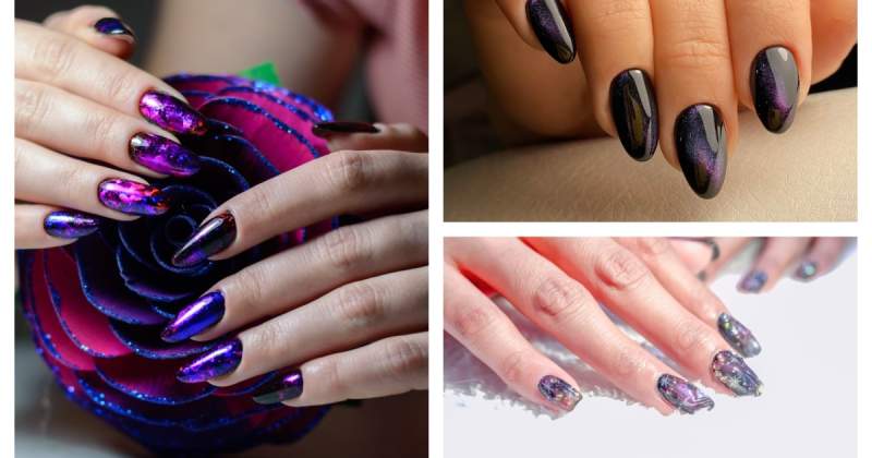 Manichiura “galaxy, inspirată de spațiu și detaliile lui fascinante, se află de câțiva ani în centrul atenției și ne-a cucerit cu reflexele ei de albastru profund, violet și mov închis, negru sau indigo intens. Cosmosul cu ale lui miliarde de stele, găuri negre, galaxii, străluciri celeste, ceruri înstelate și întunecate a început să fie redat prin diverse tehnici și pe unghii. De multe ori, manichiura în stil “galaxie” are și efecte holografice, realizate cu ajutorul glitterului, ale detaliilor pictate sau ale ștrasurilor de unghii aplicate.