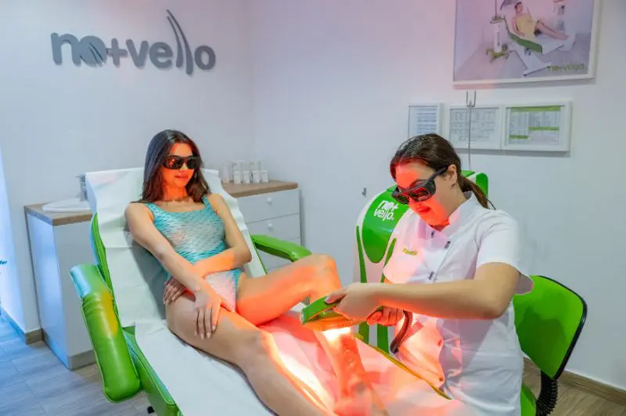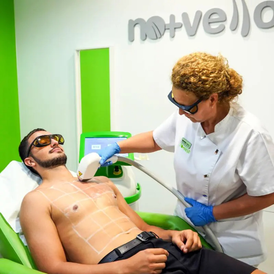 • Specialistii Nomasvello îți vor efectua o testare gratuită, care include întreg protocolul de lucru, pentru a te familiariza cu toți pașii aferenți unei sedințe de epilare definitivă și pentru a vedea cum răspunde pielea ta la tratament.