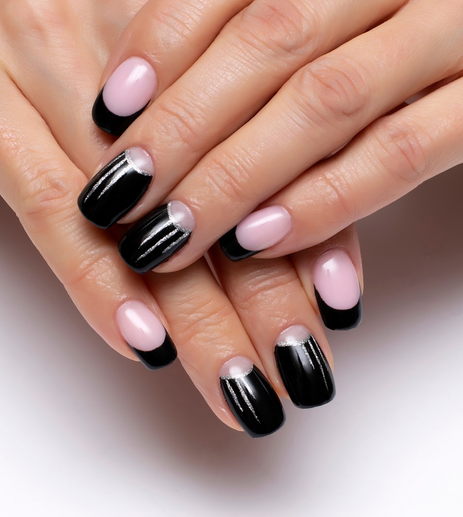 Iată 25 de modele de unghii în stil franțuzesc, cu vârfurile unghiilor negre, în tendințe în acest sezon:
