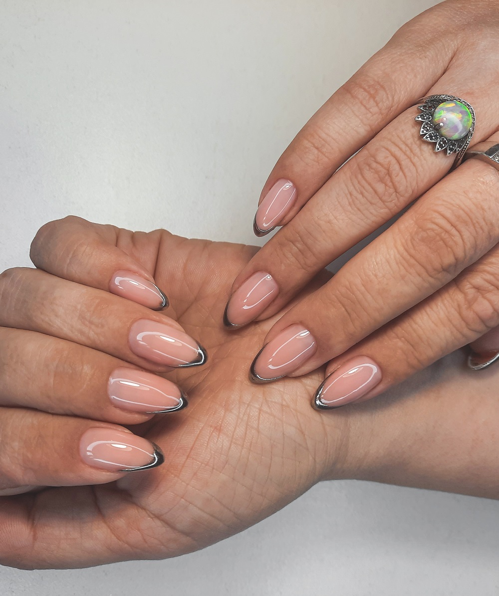 Trending în 2025: Manichiura french cu detalii prețioase - accente cromate, glazurate sau de strălucire pe vârfurile unghiilor!
