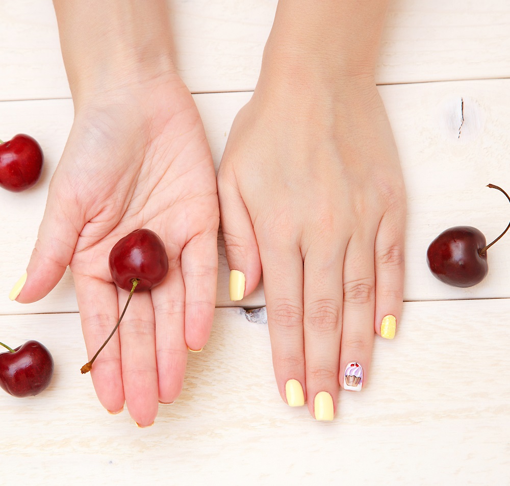 Atunci când vine vorba de manichiură, cireșele pe unghii vor fi întotdeauna o idee bună și una jucăușă în același timp, nostalgică, drăguță, feminină, poate chiar un pic romantică. Manichiura cu cireșe imprimate pe unghii, pictate sau cu stickere aplicate este un trend chic în manichiura verii, dar aduce totodată și un strop de veselie și “delicioșenie” în viețile noastre.