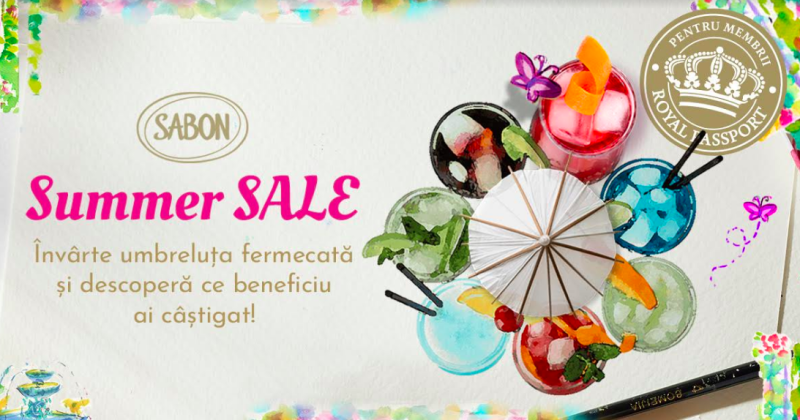 Pe toată durata lunii august, Sabon te ispitește cu Summer Sale, o campanie veselă și incitantă care te va teleporta pe malul mării, pe nisipul fin, sub umbreluțe colorate, și care-ți poate aduce pe loc reduceri importante la cosmeticele și aromele tale preferate, plus produse bonus la cumpărături!