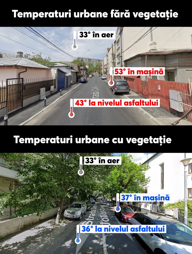 ”Am explorat potențialul diverselor strategii de răcire urbană în contextul schimbărilor climatice și a efectului de insulă termică. Strategiile discutate includ plantarea de copaci, crearea de micro-lacuri, utilizarea materialelor cu albedo ridicat, instalarea panourilor solare și fotovoltaice, implementarea acoperișurilor verzi și grădinilor suspendate, precum și optimizarea planificării urbane. Evaluarea se bazează pe beneficiile oferite de fiecare strategie, precum absorbția carbonului, ameliorarea temperaturii și calitatea vieții. În București, implementarea acestor măsuri ar putea duce la o scădere estimată de 2-3 grade Celsius în perioadele de caniculă”, explică Virgil Profeanu, fondatorul VEGO Holdings.