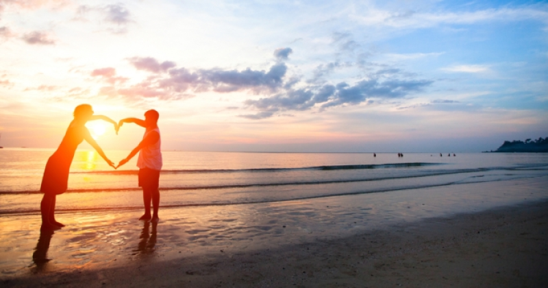 Foto homepage: Shutterstock.com; iubire, plaja, mare, apus, oameni